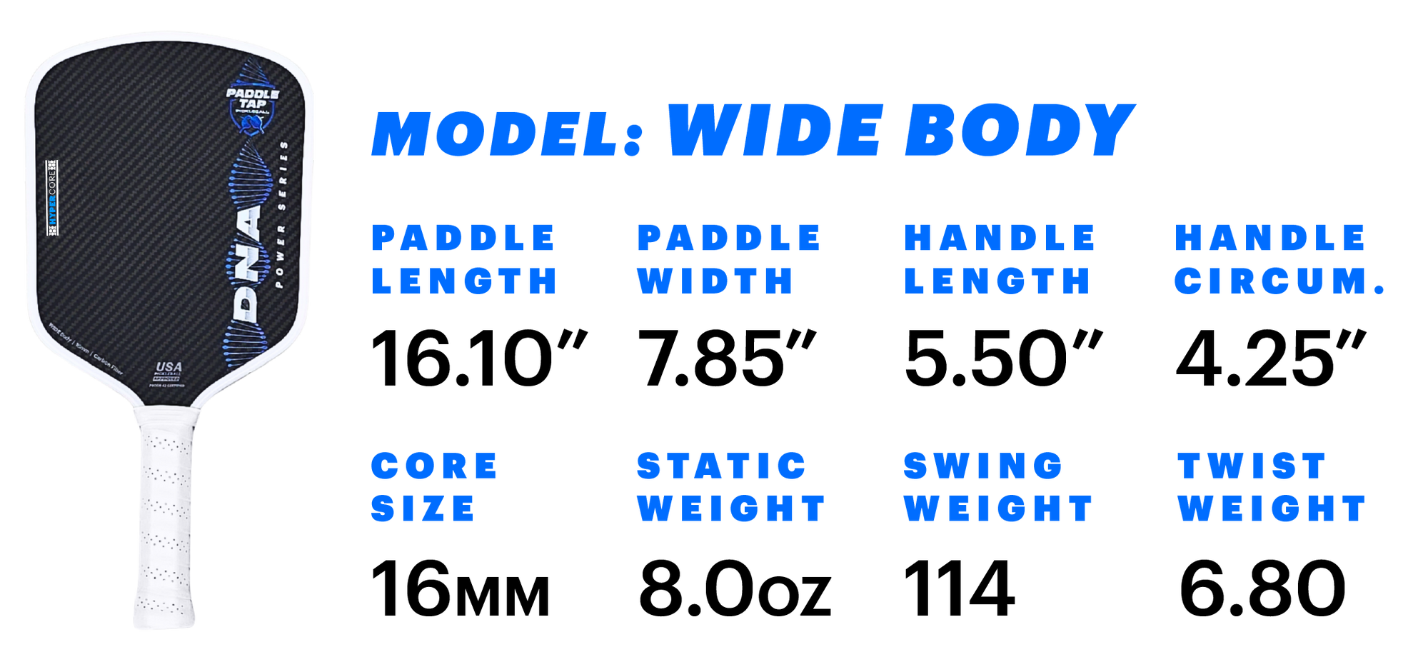 Designed for players who value stability, control, and confidence under pressure, the DNA Power Series HyperCore delivers a more solid, forgiving feel without giving up power. Built around a thicker 16mm core and enhanced perimeter support, HyperCore is engineered to expand the sweet spot, reduce vibration, and maintain consistency across every part of the face.
