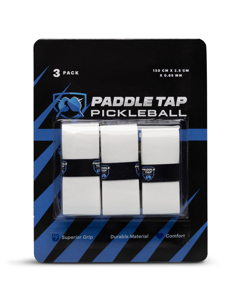 Introducing the Paddle Tap Pickleball Tacky Grips, designed to give players the ultimate control and comfort on the court. Our grips are crafted with high-quality materials to ensure a tacky and reliable hold, allowing you to focus on your game without worrying about slipping.
